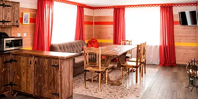 - Просторные деревянные дома и коттеджи с камином, баней и кухней.